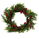 50 cm Kranz mit grünem Kunststoff/Stoffblättern/rote Beeren/Metallglocke
