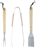 Set di 3 Attrezzi per Barbecue in Acciaio e Legno - Spatola, Pinza e Forchettone
