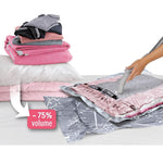 Set von 2 großen Vakuumsparungsfällen mit einer Größe von 55 x 80 x 0,2 cm. Ausgestattet mit dem exklusiven Q2 -Ventilventil, das die maximale Geschwindigkeit und die Praktikabilität gewährleistet, da es bei jedem Staubsauger funktioniert. Der Sack verfügt über eine angenehme Seite und den transparenten Rücken, um den Inhalt zu erkennen. Es wird mit einem mehrschichtigen Material hergestellt, das Robustheit, maximale Nachlass und Haltbarkeit garantiert. Der Reißverschluss ist doppelte Schweißen für den sicheren und mehreren Gebrauch.