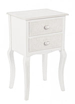 Weiße Holzschublade 2 Schubladen Chlor Technische Details: MDF. Regale und Fronten mit eingelegten Blumenmotiven. Beenden Sie mit undurchsichtigem Wasser. Polylärgriffe. Maßnahmen: 41 cm Länge 33,5 cm Breite 68 cm Höhe