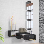 Möbeleingang von Anthrazitwand mit goldenem Spiegel