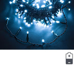 180LED -Kette, weißes Licht, 5 -mm -LED -Größe nicht austauschbar. Grüner Faden. Gesamtlänge Draht 9,25 mt, 0,3 m Stromkabellänge, 8,95 m lichtkabellänge, 5 cm LED -Abstand. 8 Licht spielt mit Gedächtnis. Timer in 6/18 Stunden. Für interne externe Verwendung IP44. Mit Farbbox. Es funktioniert mit 3XAA -Akku nicht enthalten.