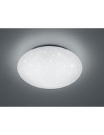 Die Deckenlampe Lukida Von Triobeleuchtung Es verfügt über eine runde Struktur, die ausschließlich aus weißem Kunststoff mit glitzernden funkelnden Sterneneffekten besteht.