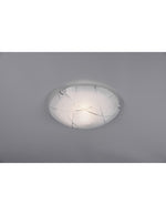 Das Deckenlicht Sandrina di Trio -Beleuchtung Es hat eine runde Wickel in körnigem weißem Glas.