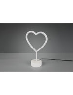 Die Tischlampe Herz durch Trio -Beleuchtung Es besteht aus einer runden Plastikbasis in weißem Finish und einem integrierten, herzförmigen LED -Diffusor, einem Ein/Aus -Schalter enthalten.