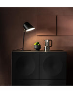 Tischlampe - Elektra - Materialien: F? Metalllampenschirm Struktur: Metall Unedles Metall FARBEN: Licht: undurchsichtig Schwarz Struktur: undurchsichtiges Schwarz Basis: Schwarz Maße: 20 cm x 20 cm H. 50 cm