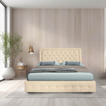 Doppelbett -Knopf -Champagner mit gestepptem Kopfteil
