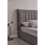 Dunkeles graues Saturnbett mit vertikalem Stich Kopfteil