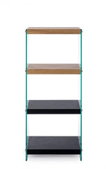 MDF -Regale, die mit Holzeffekt -Melaminpapier bedeckt sind. Temperierte Glas Hüften 12 mm dick. Zusammengebaut werden. Maßnahmen = 40a - 30b - 100,5h