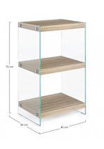 MDF -Regale, die mit Holzeffekt -Melaminpapier bedeckt sind. Temperierte Glas Hüften 12 mm dick. Zusammengebaut werden. Maßnahmen = 40a - 30b - 70H