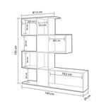 4 -Level -Regal -Bücherregal 9 Weiß- und Eichenfächer 145x29xh.145 cm