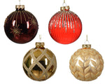 Weihnachtskugel dekoratives Glas mit lucid-opacco transparenter Wirkung mit Motivenmotiven kostspielige Blätter und Schachmischungen Rot/Gold Farbe Ø 8 cm