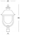 Outdoor -Lampe im Aluminium der Stanze mit höherer KupferabdeckungKopfkopf mit der Aluminiumstruktur der Kaste. Höhere Kupferabdeckung. Transparenter thermoplastischer Diffusor. Hülsendurchmesser: 60 mm. Maximale Lampenhöhe: 150 mm. Stromversorgung 230 V ~ 50 Hz. Schutzklasse: IP43 Maximale...