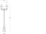 Palo in Die -cast -Aluminium. Transparente Glaslautsprecher. Maximale Lampenhöhe: 210 mm. Dreieck auf dem Boden reparieren. 230 V ~ 50 Hz Stromversorgung Schutzklasse: IP43. Anzahl der Lampen: 2. Maximale Leistung von Lampen: 100W.
