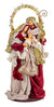 Diese großartige Statue der Heiligen Familie besteht aus hochwertigen Materialien wie Harz, Samt, Gaze, Hanf, Brokat, Spitze, Satin, Zinn, Papier und MDF. Jedes Detail wurde mit großer Präzision behandelt, um ein wirklich üppiges Kunstwerk zu schaffen.