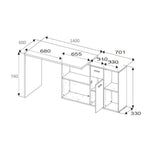 Weißer reversibler Schreibtisch 4 weiße Fächer 210x60xh.74 cm