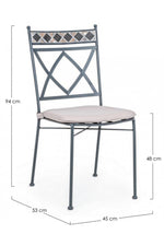 Berkley Stuhl im Outdoor -Metall Produkteigenschaften: Stahlkonstruktion, die durch Galvanisierung und Pulver gestrichen wird (Polyester) Zurück mit Keramikdekoration mit Mosaikverarbeitung Abnehmbares Kissen im Polyestergewebe stapelbar Karton ohne Karton Verkauft in Sets von PZ 4 und...