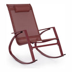 Die Sitzung und der Rücken bestehen aus 2x1 -Textilen, einem materiellen, der gegen atmosphärische Mittel resistent und leicht zu reinigen ist. Der rockige Sessel ist auch mit einer bequemen gepolsterten Kopfstütze für zusätzliche Unterstützung während der Entspannung ausgestattet.