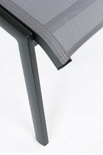 Der Sitz und der Rücken sind mit Phifer 1x1 -Textilen, einem materiellen gegen atmosphärischen Mittel und leicht zu reinigenden und leicht zu reinigenden. Die Rückenlehne ist in 5 verschiedenen Positionen einstellbar, sodass Sie die bequemste Position finden, um sich zu setzen oder sich hin zu legen.