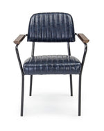 Vintage Style Stuhl in Eco -Leder mit blauen Armlehnen