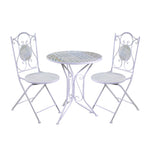 Schmiedeeisentisch mit Mosaik und Stühlen