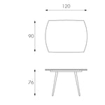 Maße: 90 cm x 120/180 cm H. 76 cm