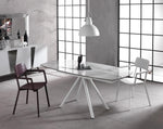 Die generische Größe der Tabelle beträgt 90 cm x 120/180 cm H. 76 cm und bietet ausreichend Platz, um Ihre Gäste bequem aufzunehmen. Die Oberfläche des Tisches besteht aus Keramik auf gemäßigtem Glas, um eine außergewöhnliche Dauer und den Widerstand zu gewährleisten. Mit den Keramiklängen auf getempertem Glas können Sie den Tisch leicht verlängern, um mehr Menschen während besonderen Anlässen aufzunehmen.