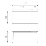 Erweiterbare Tabelle mit Keramik Top 120/170 x 80 cm