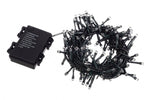 96LED -Kette, klassisches Licht, 5 -mm -LED -Größe nicht austauschbar. Grüner Faden. Gesamtlänge Draht 5,05 mT, 0,3 m Stromkabellänge, 4,75 m leuchtende Drahtlänge, 5 cm LED -Abstand. 8 Licht spielt mit Gedächtnis. Timer in 6/18 Stunden. Für interne externe Verwendung IP44. Mit Farbbox. Es funktioniert mit 3XAA -Akku nicht enthalten.