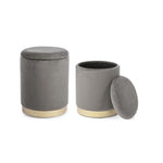 2 Pouf in Samt mit Polina Grey Container eingestellt