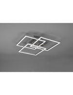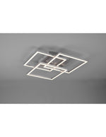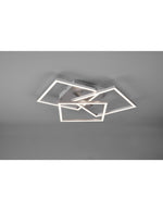 Das Deckenlicht HANDY, MOBILTELEFON Marke Triobeleuchtung Es hat eine Metallstruktur mit undurchsichtiger Nickelfarbe, die aus 3 einstellbaren quadratischen Diffusoren in unterschiedliche Richtungen besteht.