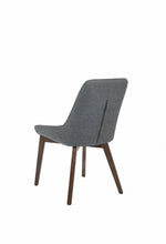 Der 62 cm x 49,5 cm H. 87 cm Stoffstuhl ist ein elegantes und komfortables Möbelstück für Ihr Zuhause. Mit dunkelgrauem Stoff und Walnussbeinen verleiht dieser Stuhl Ihrem Raum Stil und Wärme.