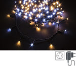 500LED-Kette, weißklassisches Licht, 5-mm-LED-Größe nicht austauschbar. Grüne Draht, Gesamtlänge des Gewinde 27,95 mt, 3MT -Netzteilkabellänge, 24,95 m Lichtdrahtlänge, 5 cm LED -Abstand. Ausgestattet mit Schuko -Sockel. 8 Licht spielt mit Gedächtnis. Für interne externe Verwendung IP44. Mit Farbbox. Mit 31v6w Transformator.