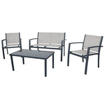 Das Garden Lounge -Set umfasst 1 Bank, 2 Sessel und 1 Tisch.