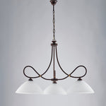 Rostschwarzer Eisen Kronleuchter Drei Lichter Paralumi in Bianchi Alabaster Glas 78x H65 cm