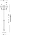 Teleskopstange im Aluminium der Stanzkaste. Transparente Glaslautsprecher. Maximale Lampenhöhe: 170 mm. Netzteil 230 V ~ 50 Hz. Schutzklasse: IP43. Anzahl der Lampen: 3. Maximale Leistung von Lampen: 60W.