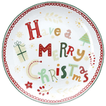 Die weiße Basis ist mit einem roten und grünen Rahmen und mit einem Allegra -Schreiben "Have Frohe Weihnachten" in der Mitte dekoriert.