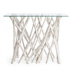 Die gebleichten Teakzweige geben der Konsole einen einzigartigen und unverwechselbaren Aspekt. Teaks ist ein resistentes und langlebiges Holz, das für seine Schönheit und seine Fähigkeit bekannt ist, den Atmosphärenagenten zu widerstehen. Das in Nitrocellulose basierende Finish verleiht Eleganz und schützt das Holz im Laufe der Zeit.
