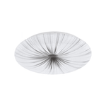 Die Deckenlampe oder die Nieves -Wände der Eglo -Marke haben eine runde Weißmetallstruktur und Polycarbonat -Diffusor mit silbernen dekorativen abstrakten Linien.