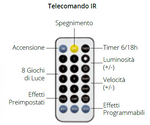 - 21 Funktionen: ON-AUS, 8 LICHTSPIELE SELECTBLIEDE MIT Variabler Helligkeit ausgewählt