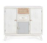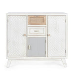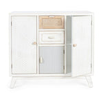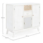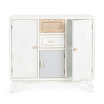 Credenka Drei Türen Zwei Schubladen in weißem Weißholz 87x36x H80 cm