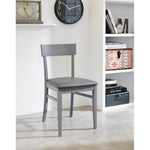 Dunkelgrau lackierter Holzstuhl mit ähnlichem Sitz