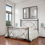 Eisenbett eineinhalb Quadrat mit schwarzer Fußbrett Lagune 126x208x H117 cm