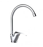 Küchenmixer mit hohem Mund und 35 mm Durchmesserpatrone. Es besteht aus Messing mit glänzendem Chromfinish und hat eine Höhe von 290 mm und eine Tiefe von 220 mm.