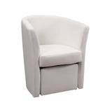 Gepolsterter Sessel mit weißem Öko -Leder und abnehmbarem Pouff bedeckt