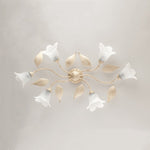 Gold Elfenbein Eisendecke Licht Sechs weiße Alabaster Lichter weiß 95x52x H20 cm