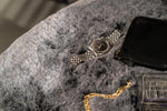 Graue synthetische Pelzsessel und Schwarz/Gold -Beine