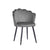 Grauer Samt -Omni -Stuhl mit schwarzen Metallbeinen.