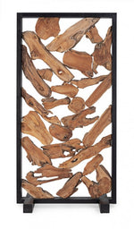 Die innere Panel der Parade besteht aus Teakwurzeln mit einem Wasserbasis, das seine Schönheit und natürliche Vielfalt an Schatten und Venen des Holzes verbessert. Jedes Feld ist einzigartig, da die von Holz erzeugten Formen variieren können, was dem Vergleich einen einzigartigen und unverwechselbaren Charakter verleiht.