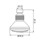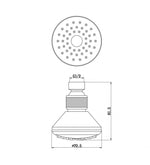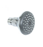 Duschkopf mit schwenkbarer Antikalkscheibe. Der Duschkopf ist verchromt, sodass er in der Umgebung, in der er verwendet wird, hervorsticht.